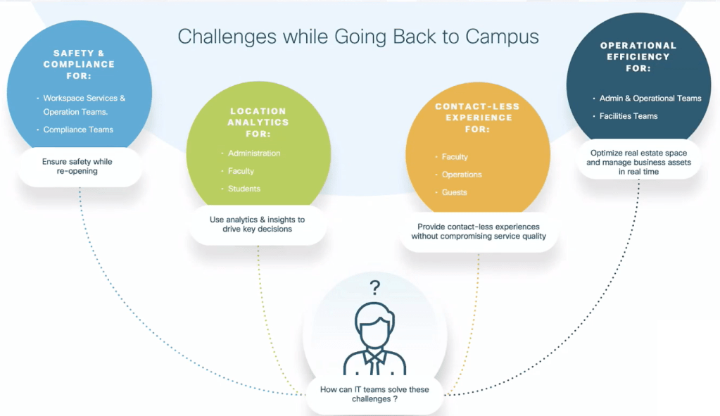 Cisco sees four areas of using DNA Spaces to help us get back to the Campus: